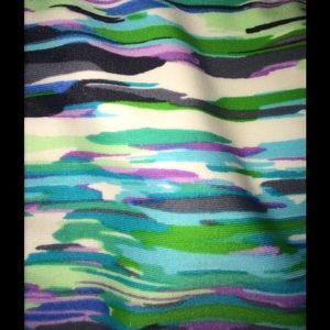 Bikini swim bottom. Beautiful colors of Aqua, light blue, green, orchid, pink and white. Great condition. No pilling. From a smoke free home.