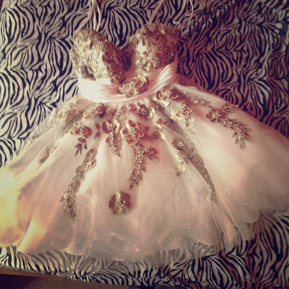 Terani couture size 4 above the knee poofy dress. Ivory flower detail with diamond sequins.