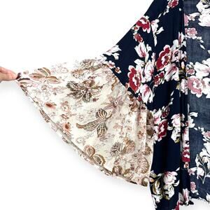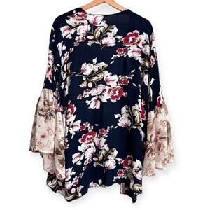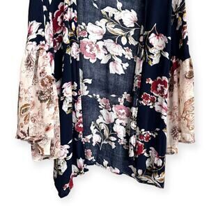Very j Floral Open Front Exaggerated Flutter Sleeve Tunic Blouse Women's Size L