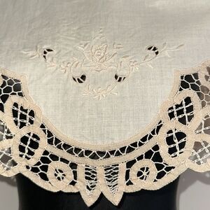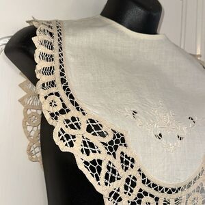 Very large vintage creamy tan floral embroidered collar with Battenberg lace