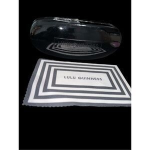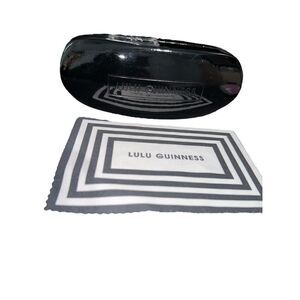 Very nice UNISEX LULU GUINNESS EYEGLASSES SUNGLASSES CASE HARD SHELL Black Shiny WITH sunglasses cleaning cloth good condition minor scuffs