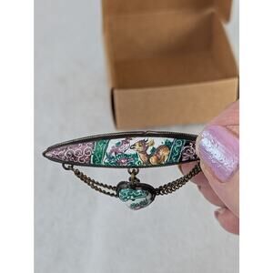 Very old Vintage Chatelaine approx 1930 Hand painted 2 x 1.25"Deer + bird