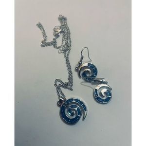 Very cute blue opal in silver infinity necklace and earrings set. Opal's are multicolored and shine many colors in the light. Comes with a necklace, chain and matching earrings.NWT #infinitynecklace, #infinityjewelry, #opalnecklace, opal jewelry, #blueopal