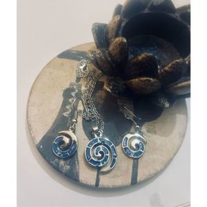 Very pretty INFINITY BLUE OPAL EARRINGS AND NECKLACE SET