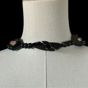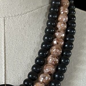 Very pretty black & pink inlay triple strand 1980s statement necklace.