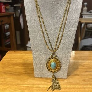 Beautiful necklace not marked. 16 inches long and circumference. is 28 inches. Beautiful necklace and great condition go on.