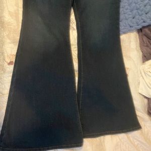 Dark wash flare jeans from Vibrant. Size 2x ( fits size 18) but is super stretchy & found in the back of my closet. I honestly think I never even worn them. I lost weight & they are big on me. But cute with heels or boots.