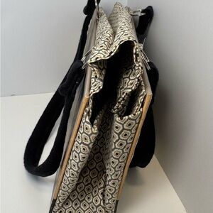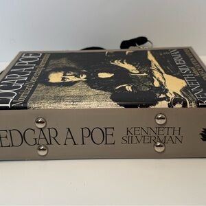 Unique bag designed like an Edgar Allan Poe book. Features black and cream colors. Perfect for literary enthusiasts. Has fabric interior and it buttons to enclose purse.