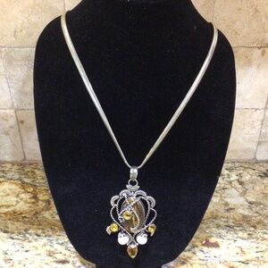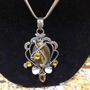 Very unique sterling, silver pendant with brown and topaz colored stones.