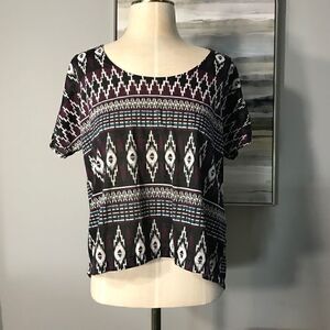 Very J Purple Tribal Aztec Hi Low Crochet Back Top