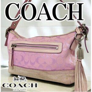 COACH 9363 Y2K Soho Hobo Tassel Mini Shoulder Hand Bag Pink Leather