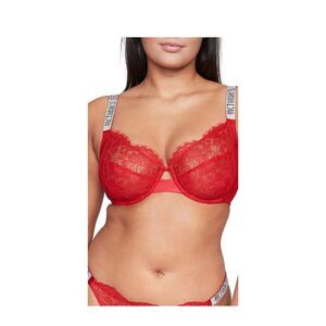 Very Sexy “The fabulous line” full coverage rhinestone strap lace bra. Red or Bl