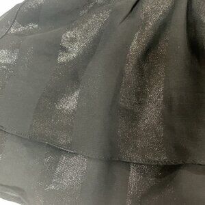 Super cute black ruffled blouse at the top has a tie, beautiful waistband with studs has a silver shimmer to the fabric