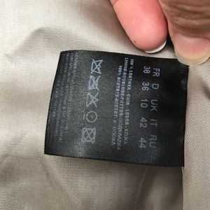 New Without Tags, VESPUCCI designer fitted beige leather jacket coat. MSRP $699. Zippers, viscose and cotton elements on the sleeves for added comfort. Front zipper closure. High Collar, 2 front pockets. Super soft leather with an intricate texture throughout (see photos). Size FR 38, D 36, UK 10, IT 42, RU 44. Equivalent of US 6, however it runs small.