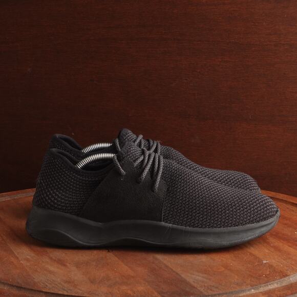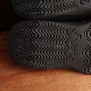 Sleek black design. Comfortable fit. Perfect for everyday wear. Some wear on onside sole, plenty pf life left!