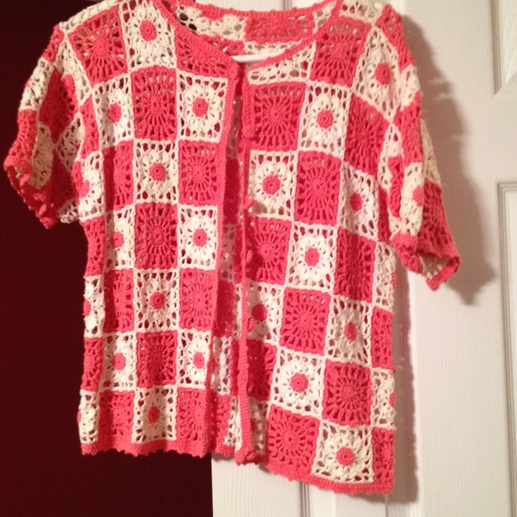 Pink and white vest . I have never seen another like it. Always get compliments on it.