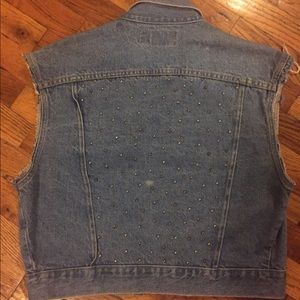 Vintage blue jean vest with metal hardware design on back.