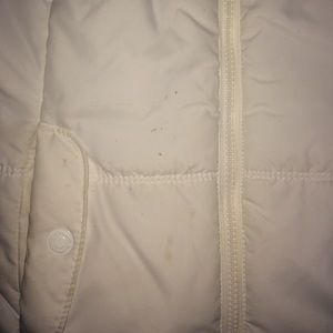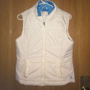 White Aeropostale vest with blue inside. Worn a few times. Light stains, as pictures try to show; can only tell with very close eyes. Two pockets. Size: large. Fits great over a sweater.
