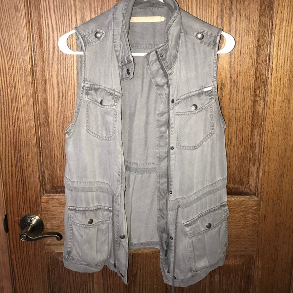 Gray zip up Vest w/ pockets and ties