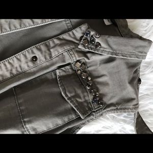 Cool olive green H&M vest with stones at collar. One snap on shoulder is broken. I used to just wear both sides open!