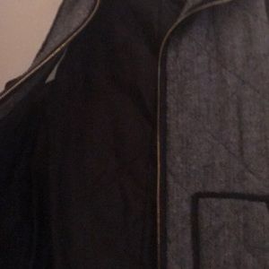 Black and white vest with black trim. Zipper. 2 pockets. 100% cotton.
