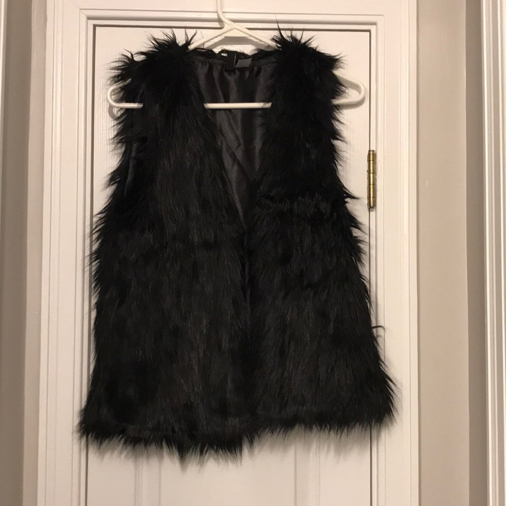 Black (faux) fur vest with pockets.