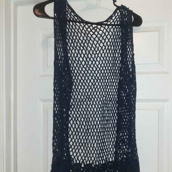 Crochet vest w/ruffled bottom - navy blue