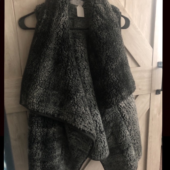 Fuzzy vest size small. Bought from a local boutique. Never won, still has tags.