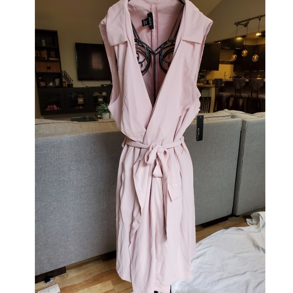 This is a long (especially on me) blush vest. I would pair it with distressed jeans, white top, accent clutch or envelope purse, nude or see-through heels and hoop earrings and long necklace for a date night look or with black or khaki slacks and black or khaki pumps with white top for work.