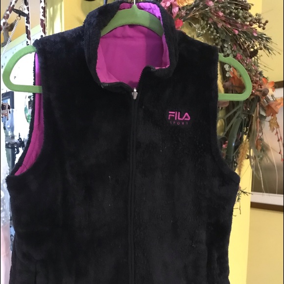 Reversible pink & black Fila vest with two front pockets