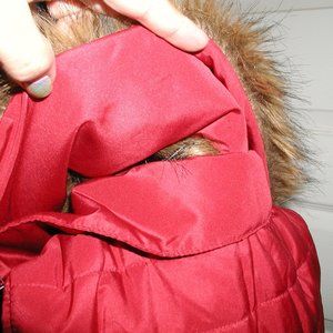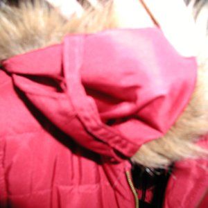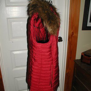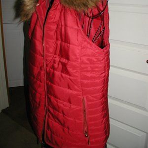 Red puffer vest with detachable faux fur collar. Zippered pockets. EUC, no stains, snags, or flaws, has zippered side pockets. Smoke free home.