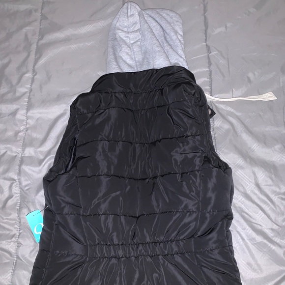 Black and grey zip up and button up vest. Brand new never worn. Tags still on!