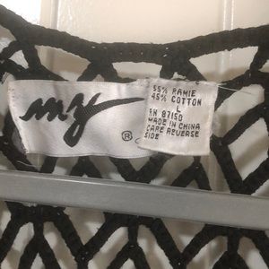 Black crochet vest with crochet buttons Size: Large Bust: 16 inches Length: 27 1/2 inches