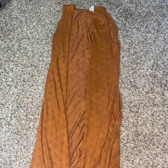 @erinnoe1 hi! No stains or imperfections at all! This has only been worn once. I think this would fit anywhere from small to large. I am a 6/8 and it fits me great.