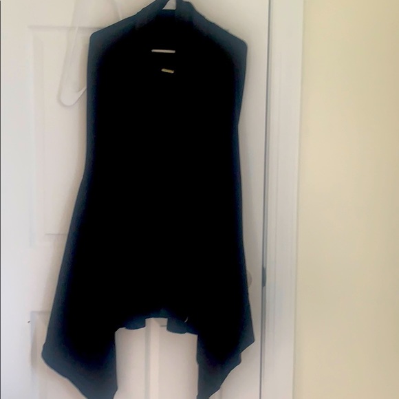 Long, flutter vest that drapes beautifully Large armholes beautiful charcoal flannel like knit, spandex