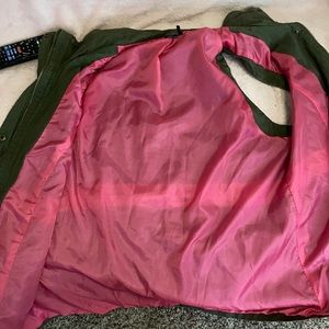 Dark green vest with pink inside