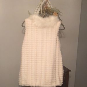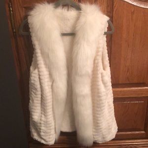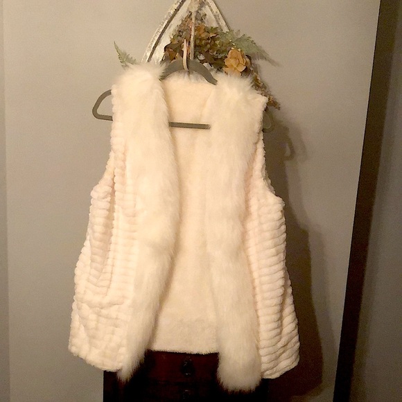 Off white 100% polyester vest. Very plush & warm. Perfect for the holidays with a skinny pant & heels!!