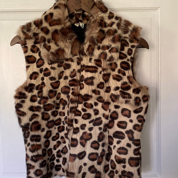 Beautiful unique fur vest , leopard print size M , non smoking home , hook and eye closures Joie is the brand