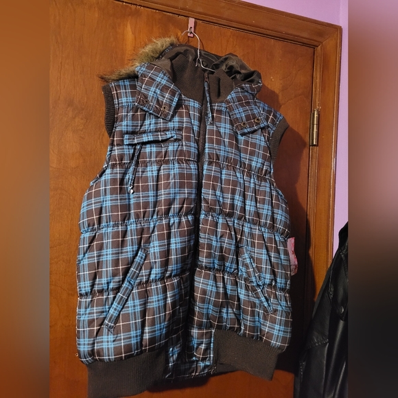 brown and blue vest jacket, Bongo, Size XL