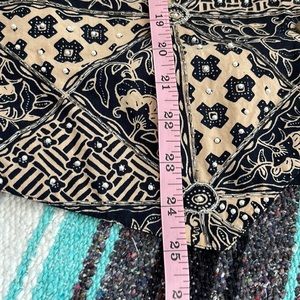 This lovely vest features a 100 % cotton beige base with black floral and geometric pattern and beaded detail. Ties in the back. Good pre-used condition, please see photos for measurements!