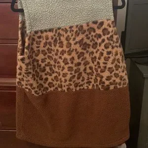 Vest is light blue on top cheetah print in the middle brown on bottom size XL do not know brand