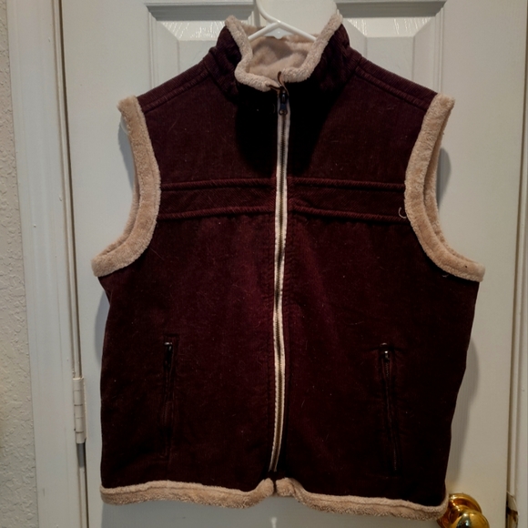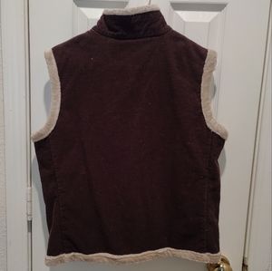 Chocolate corduroy vest with fleece like lining.