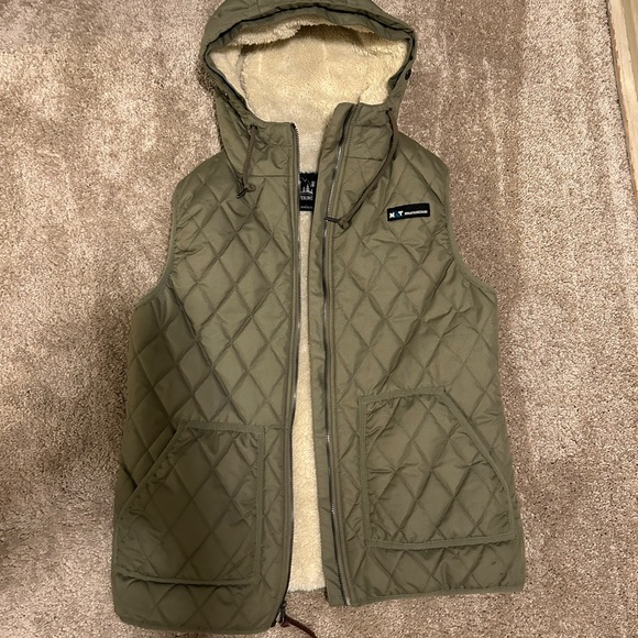 Warm, faux fur lined, durable, worn less than 5 times, size small but could wear a hoodie underneath
