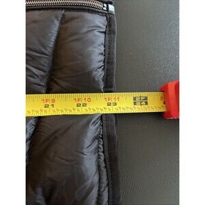The Tumi Pax Puffer Vest in black is a stylish and practical travel companion. Made with nylon outer shell material and insulated with soft down feathers, this packable vest is perfect for colder weather in winter and fall. With a full zip closure and sleeveless design, this vest is easy to put on and take off quickly. The classic black color and sleek puffer jacket style make it a versatile piece that can be worn for various occasions. The packable feature adds convenience for travel, making it a must-have for any woman on the go.