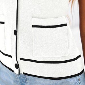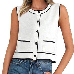 Vest Casual Button Down Sweater Vest Ribbed Knit Tank Tops With Pockets(White,X-