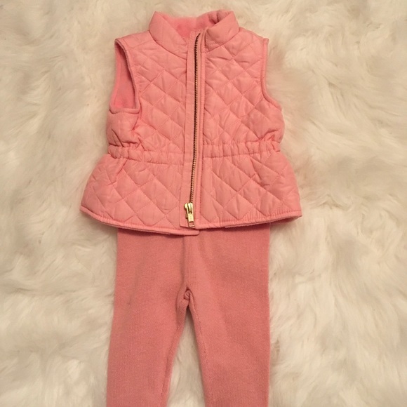 This cute vest set is a must have! The pink vest is nicely printed and the leggings look great paired with boots!