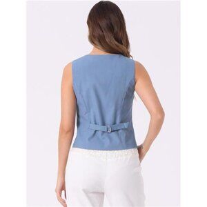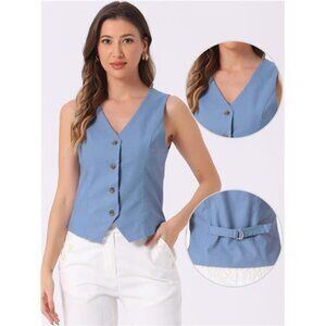 This vest for women is made up of several design points: Cozy Fabric, Adjustable Back, Button Down, V-Neck, Sleeveless, Crop Length
