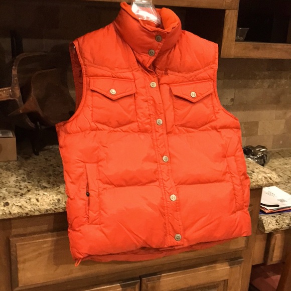 Orange polyester outer with polyester fill. Pockets on chest and lower for hands snaps on lower and upper pockets.size large