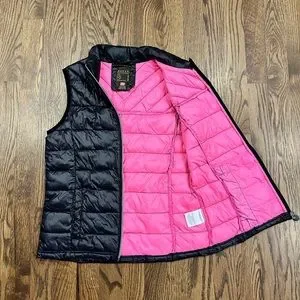 Black vest with bright pink interior in excellent condition! This is a girls XL or size 14 but will fit a women’s XS. Comes from a smoke free home.