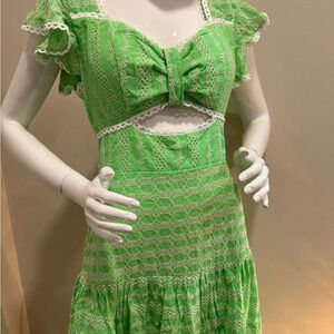 This gorgeous spring / summer dress is ready to be in your closet to elevate your style . Beautiful detailing midi dress from Brazilian designer Limonada Pink. Very unique piece . High quality New with tags size Medium / large this beautiful dress is brand new with tag . Comes from a clean pet smoke-free home.